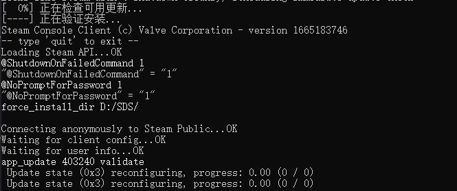 如果出现以下界面,则证明你的 Squad 服务端已开始下载。